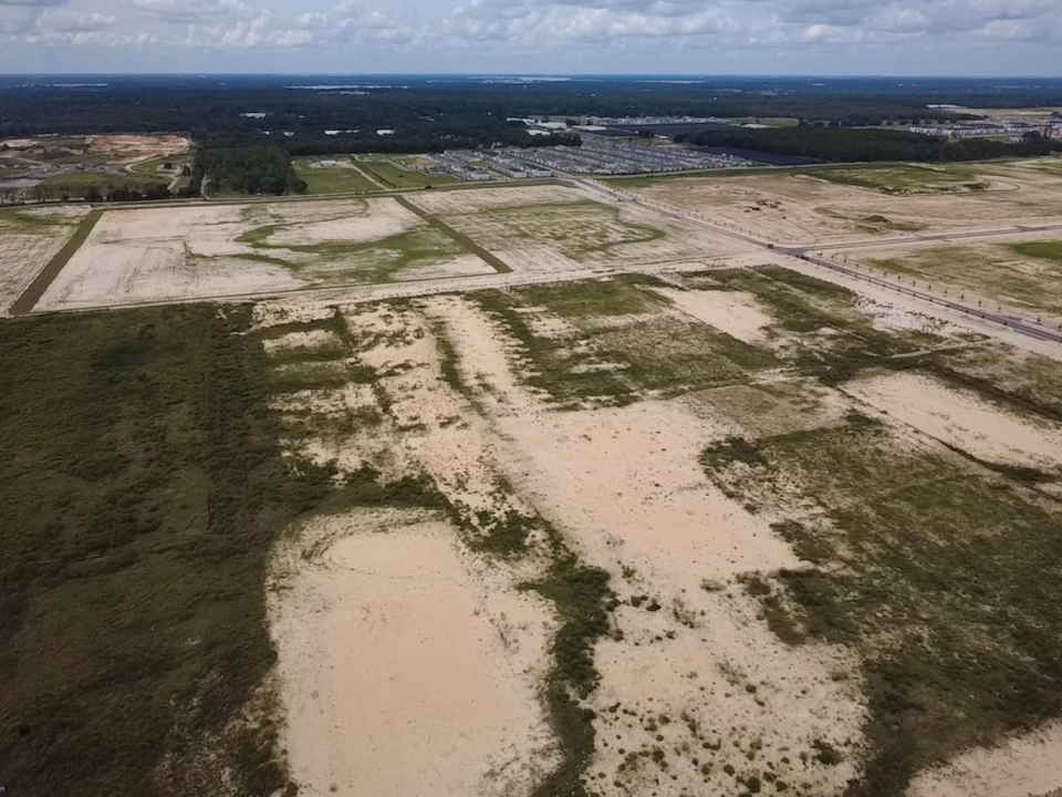 Apopka, FL. This 305-acre subdivision is being completed. We have already performed clearing, grading, and utilities. This project involved placing 1.3 million cubic yards of fill, with a contract value of $23 million. Nearing completion, the project is undergoing landscaping.