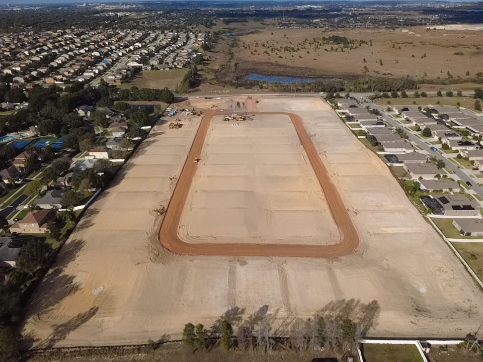 Apopka, FL. This 305-acre subdivision is being completed. We have already performed clearing, grading, and utilities. This project involved placing 1.3 million cubic yards of fill, with a contract value of $23 million. Nearing completion, the project is undergoing landscaping.